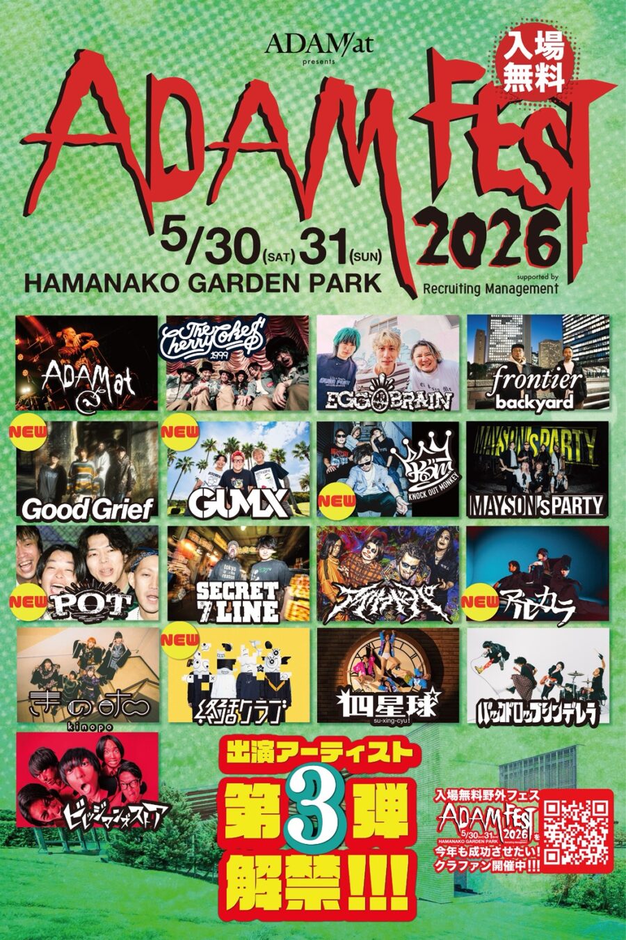 - ライブスケジュール 5/30(sat).31(sun) ADAM at 主催「ADAM FEST2026」アルカラ出演いたします(2026.3.28)
